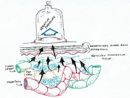 Sel-sel mati ini akan dibawa oleh arus perjalanan darah yang laju ke semua bahagian tubuh, dari kepala hinggalah ke kaki. Ia akan melekat diantara satu sama lain dan bercampur dengan asid urik, urea dan toksin. Sel darah kotor ini akan berkumpul di lapisan bawah kulit sebelum dikumuhkan.